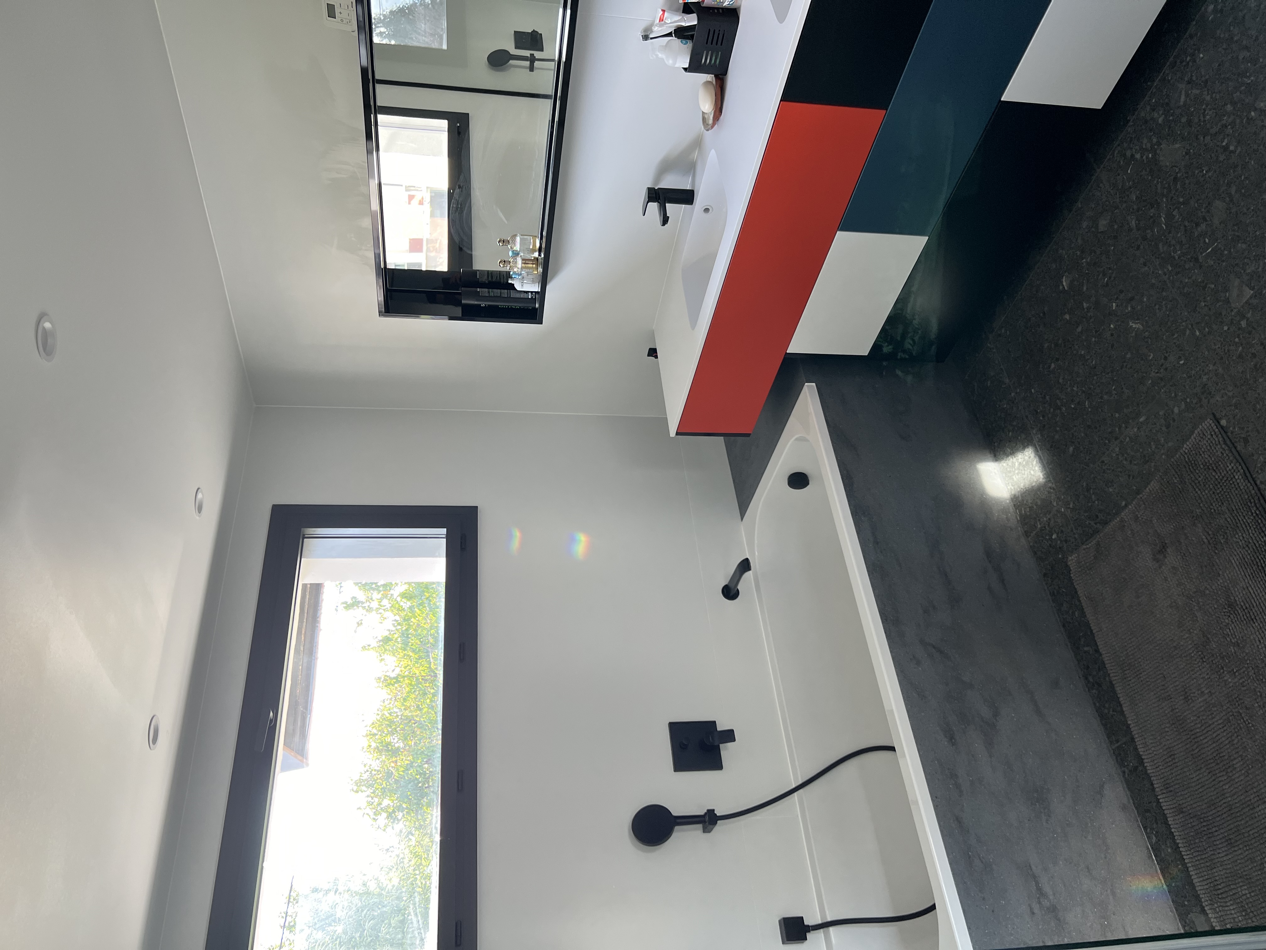 Un véritable espace bain contemporain dans cette maison rénovée.